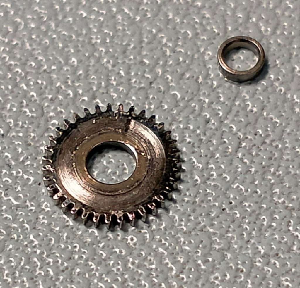 The position of the spring. I hadn’t noticed at this point but the camwheel lever had escaped when I took this picture: