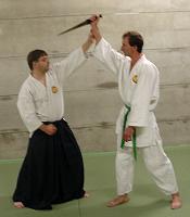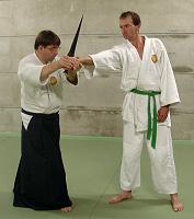 Note: Jean and Roger are wearing Japanese keiko-gi because they had just finished practicing Aikido when these pictures were taken. While some may find this objectionable, I feel it is a useful reminder that our interpretation of Marozzo is likely colored by our practice of Japanese martial arts, even if unintentional.