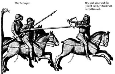 The next four chapters deal with fighting on horseback, with sword, Spiess, unarmed and with the Armbrust (crossbow).