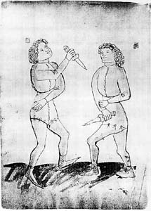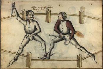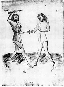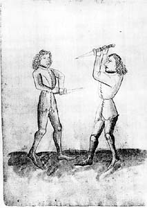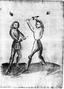 und hat den Tegen uff dem Rucken und mag stechen mit welicher hand er wyl.