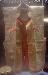 An extravagant jinbaori (surcoat) lined with red European velvet (an expensive luxury item in Japan)